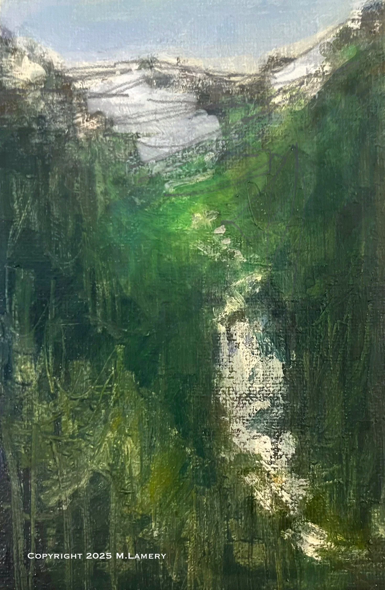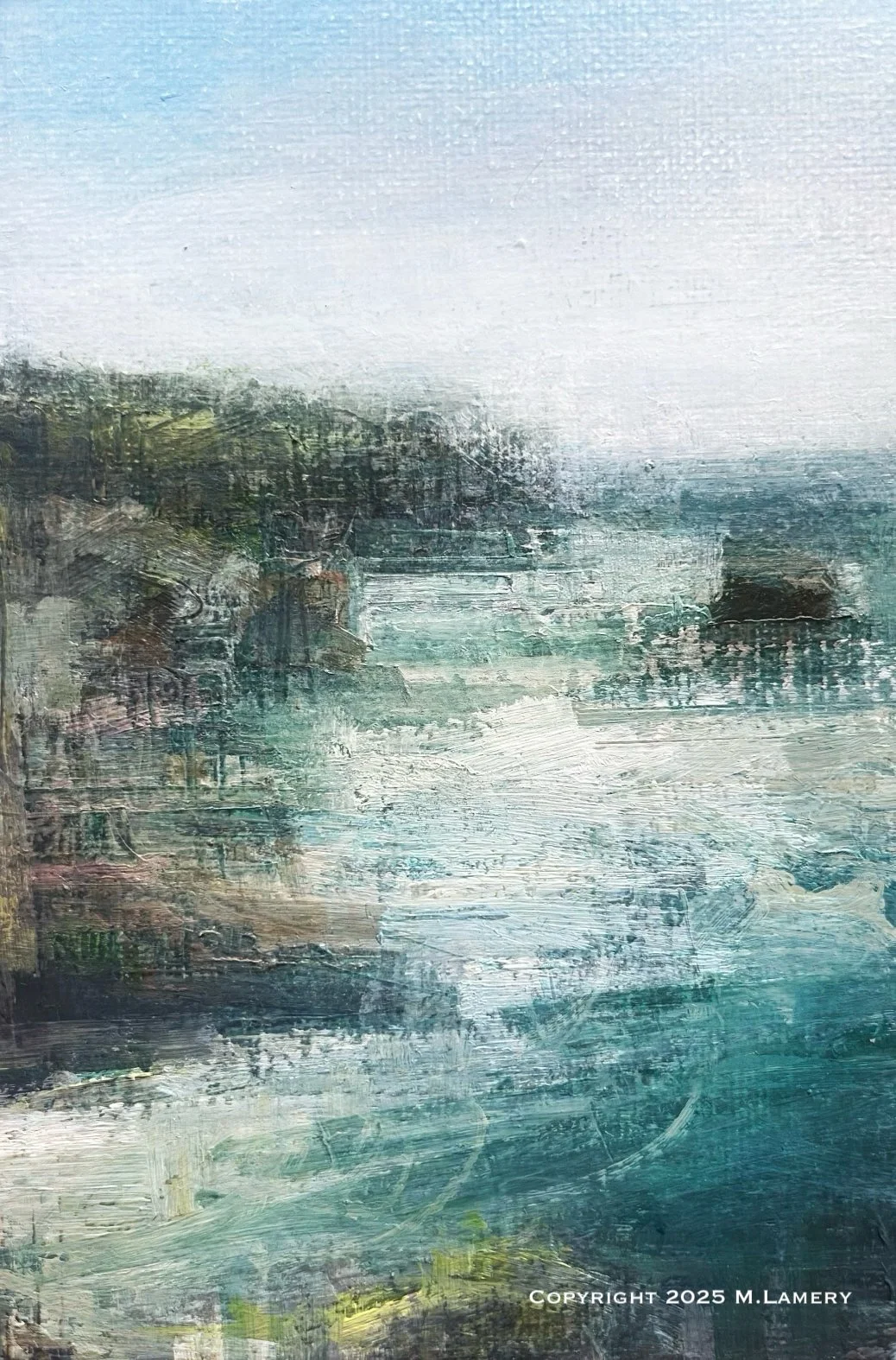 The cliffs, dark and resolute, are carved from millennia of storms, giving the scene a quiet authority that feels both wild and sacred. Moss-soft greens and ocean-deep blues mingle in a palette only the Northwest could author, where muted light is not absence but presence — an atmosphere that hums with mystery, possibility, and calm.